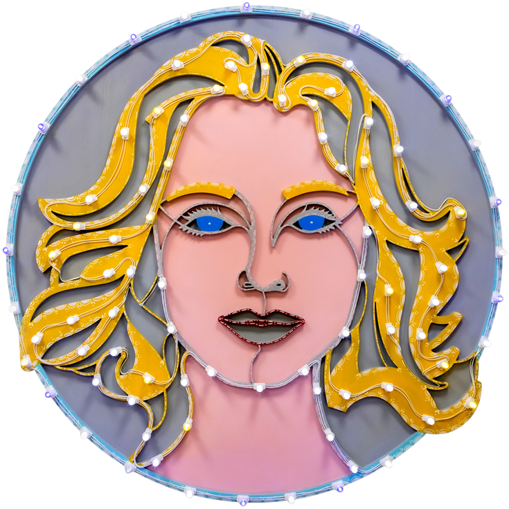 legno e luminaria, pittura smalti acrilici, 160x160 cm., 2024