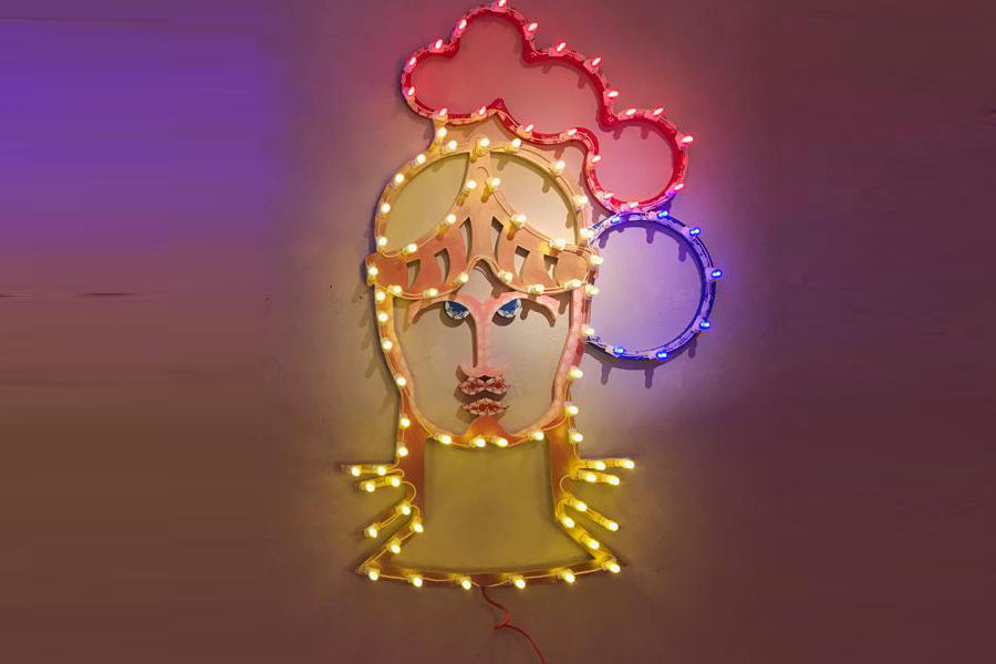 legno e luminaria, stampa digitale pittura con oli e acrilici,cm. 140 x 202,